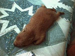 でもボクが家族として認めてもらうには大問題があった。 それはパパがねずみとか、りすとかの種類が大嫌いだったのだ。 チュウキチ兄ちゃんとチュウコ姉ちゃんは一晩パパに一生懸命お願いしてくれた。 そしてそのときチュウコ姉ちゃんはもうボクの名前をくりすとふぁあろびんと決めていたという。 かわいそうなパパはなかば強引に説得された形となった。 こうして、ボクはこの家の一員になったのだ。 生後2カ月のことだった。 |